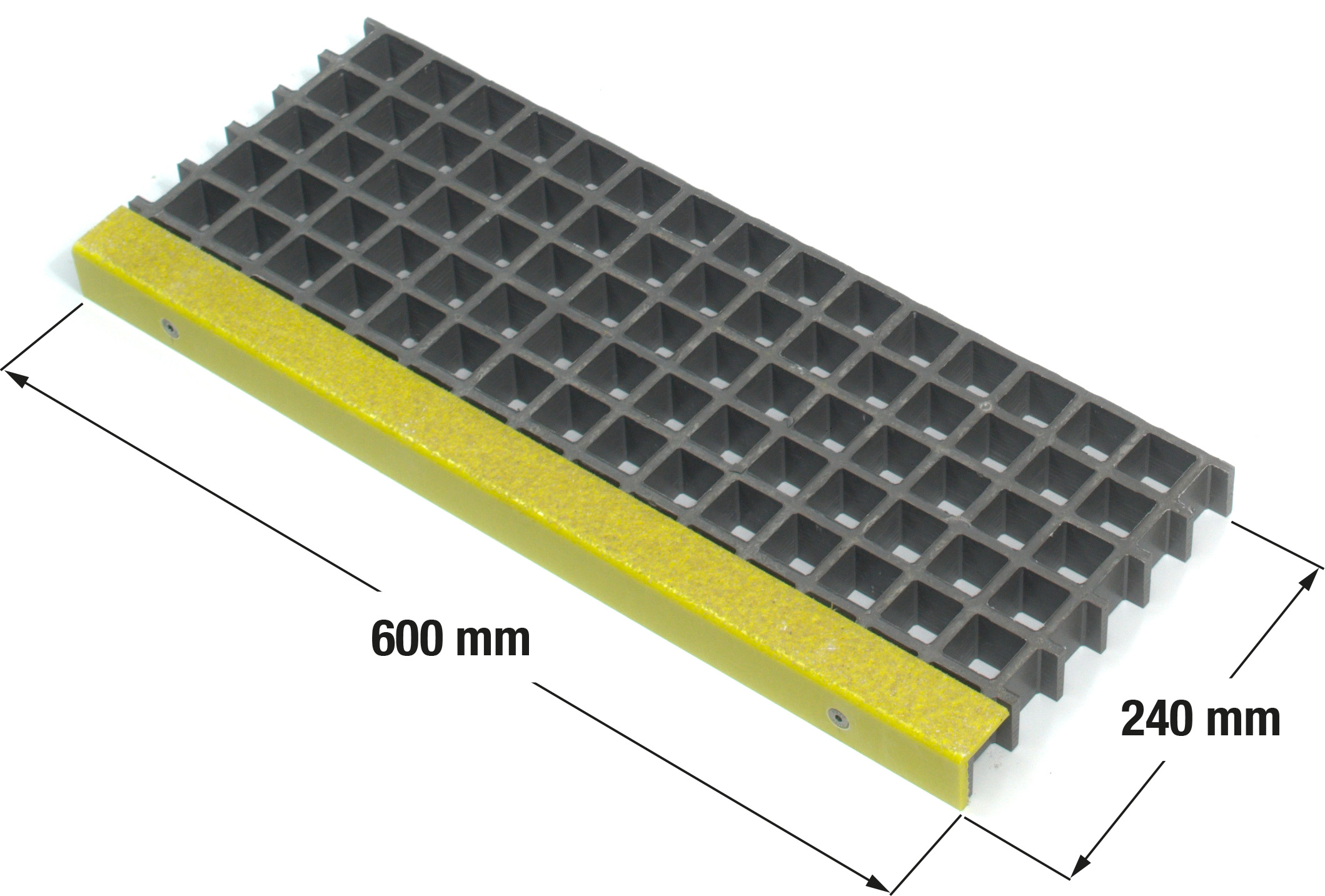 Plastový kompozitný schodiskový stupeň 600 x 270 mm / výška 38 mm | Nosná dĺžka × nenosná šírka (mm): | Nosný pásik (mm): | Hmotnosť 1ks (kg): 3 | Cena za kus (bez DPH): 36 € | skladom |